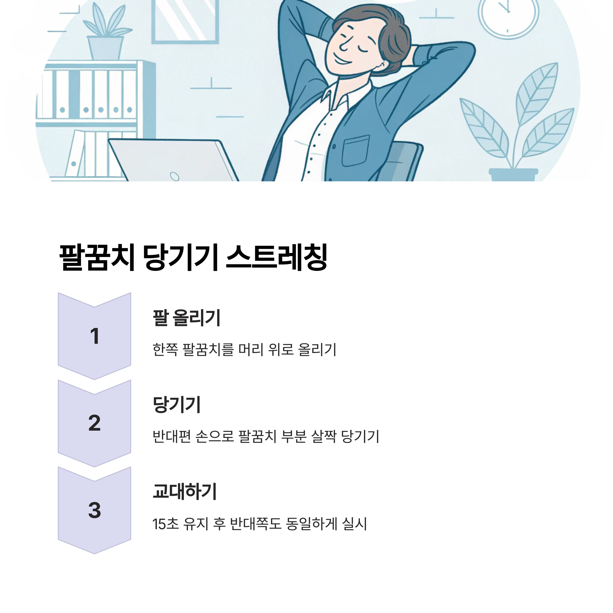 삼두근과 어깨 근육을 동시에 스트레칭할 수 있어 매우 효율적입니다.